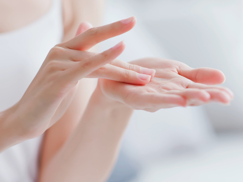 コットンよりも、手のひらで包み込むようにハンドプレスするのがおすすめです。